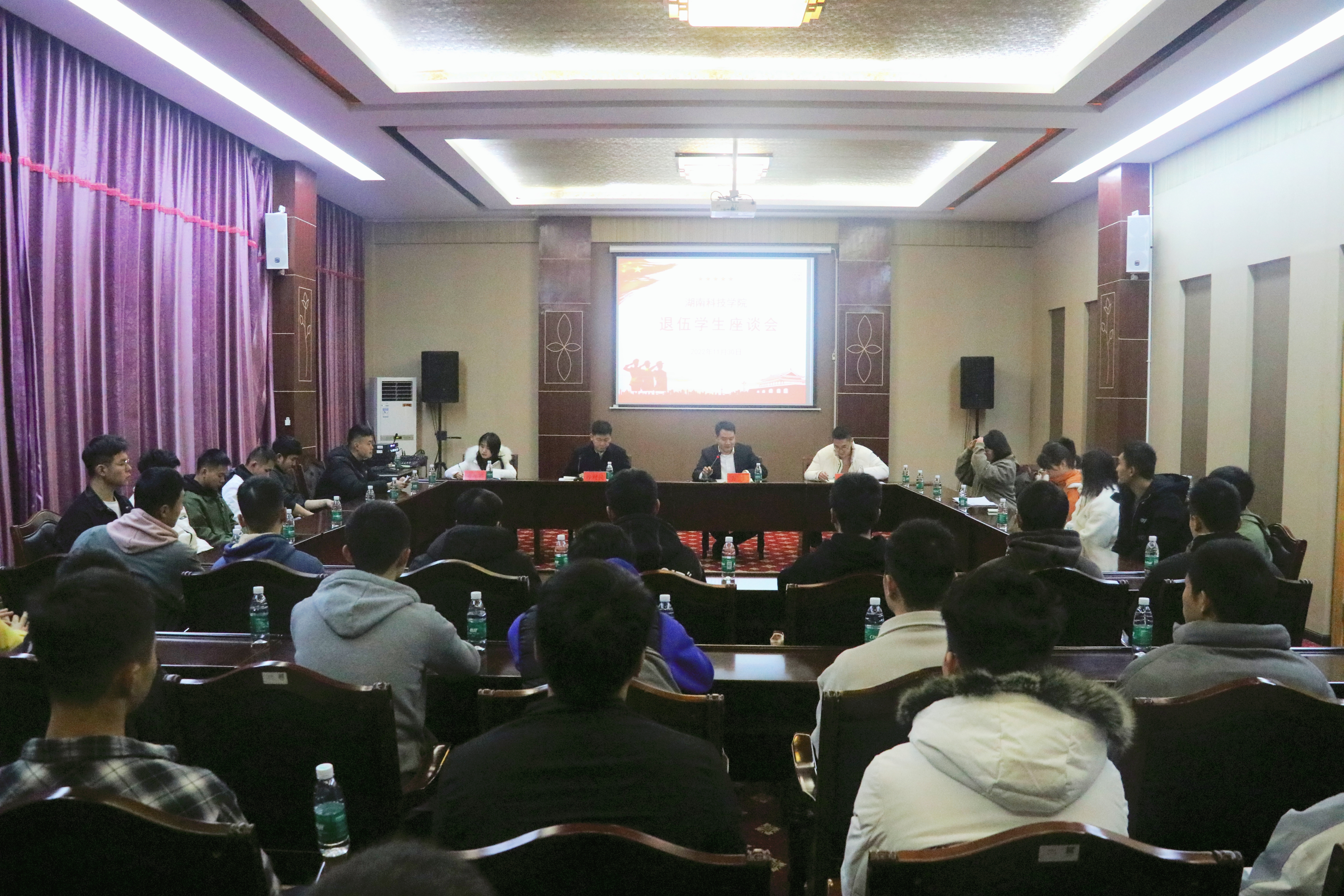会上,来自音乐与舞蹈学院的邓豪同学和文法学院的王一好同学作为退伍学生代表进行了发言,他们从入伍经历、成长收获等方面分享了自己在部队的青春故事,深情地讲述了他们从懵懂迷茫到树立坚定理想信念的过程。在自由发言环节,同学们针对复学后在生活中、学业上存在的困难、以后的打算、对学校工作的建议等进行了积极发言,与会领导、老师进行了详细解答。