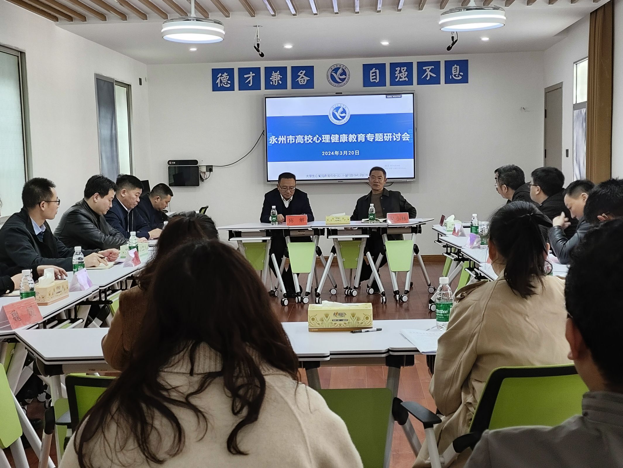 为深入贯彻落实2024年省教育厅心理健康教育工作推进会精神,高质量发展心理健康教育工作,3月20日下午,永州市高校心理健康教育工作研讨会在304am永利集团官网召开。省教育工委宣传部、省教育厅思政处一级调研员陈解出席研讨会,304am永利集团官网、永州职业技术学院、永州师范高等专科学校、湖南九嶷职业技术学院相关领导、老师参加,研讨会由304am永利集团官网党委委员、副校长、工会主席吴小林主持。