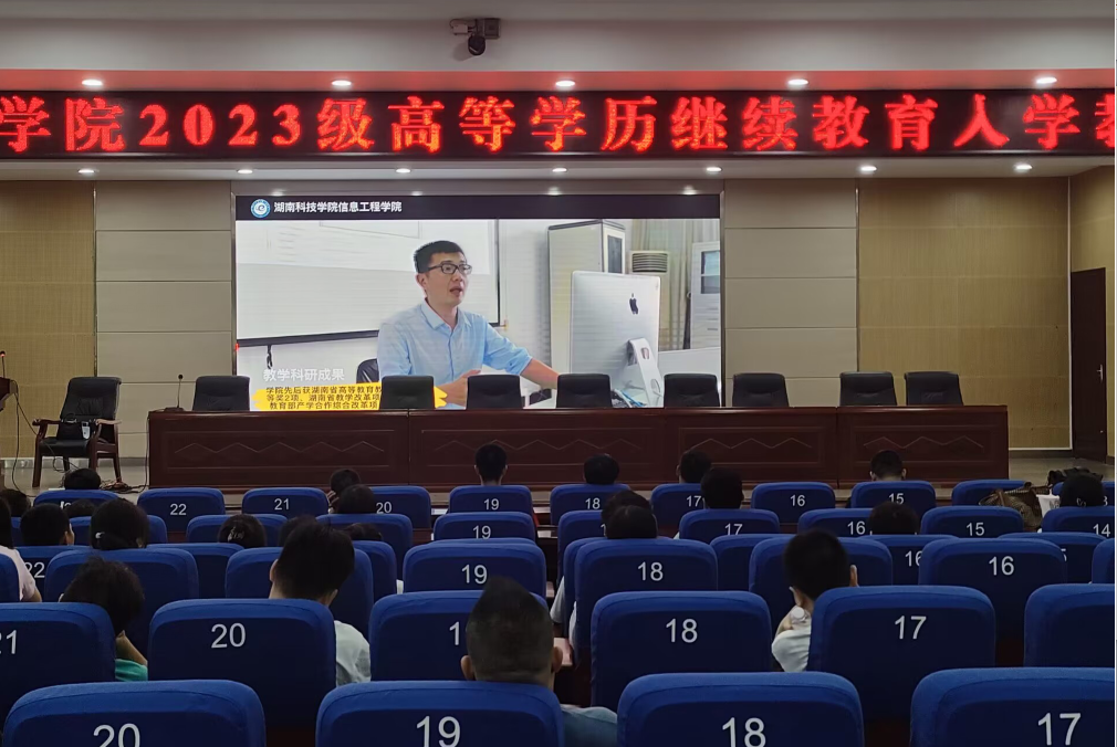 本网讯(通讯员 段元梅)7月15日下午,信息工程学院2023级高等学历继续教育入学教育在潇湘大讲堂举行。2023级全体新生、信息工程学院教职工和志愿者参加了会议。会议由信息工程学院段元梅老师主持。