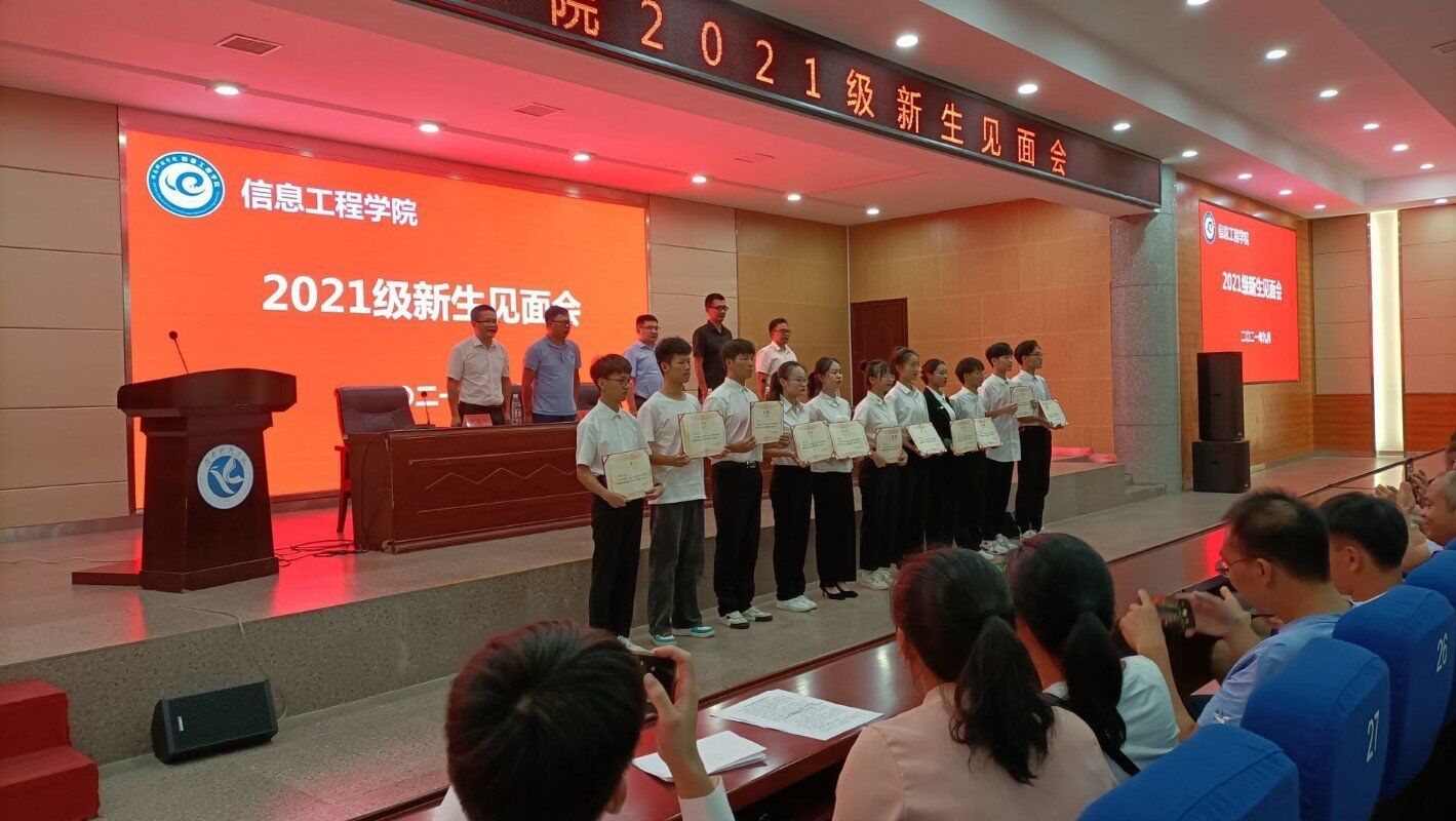 省课堂教学竞赛一等奖获得者、省级教学能手通信工程系邵金侠老师,学生党员、国家励志奖学金获得者通信1801班袁家宝同学,软件2101班陈琴琴同学等分别作为教师代表、老生代表、新生代表上台发言。此外,院领导还为全体新生副班主任颁发了工作证书。
