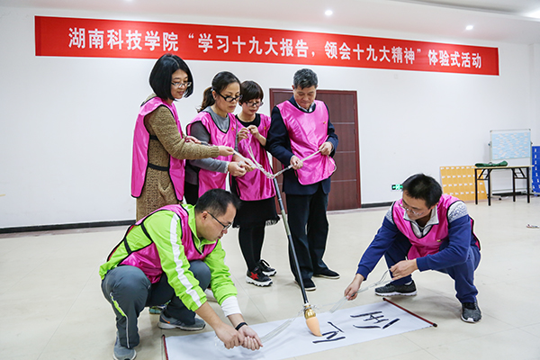 本网讯 为使广大党员同志进一步深入理解和领会十九大精神,推动十九大精神入脑入心。11月2日,学校在潇湘大讲堂党校培训室举行主题为“学习十九大报告 领会十九大精神”的体验式活动。校长曾宝成,校党委副书记、党校校长唐艳明以普通党员身份与来自党委组织部·党校、党政办、党委宣传部、纪委监察处党支部的党员同志一同参与了活动。