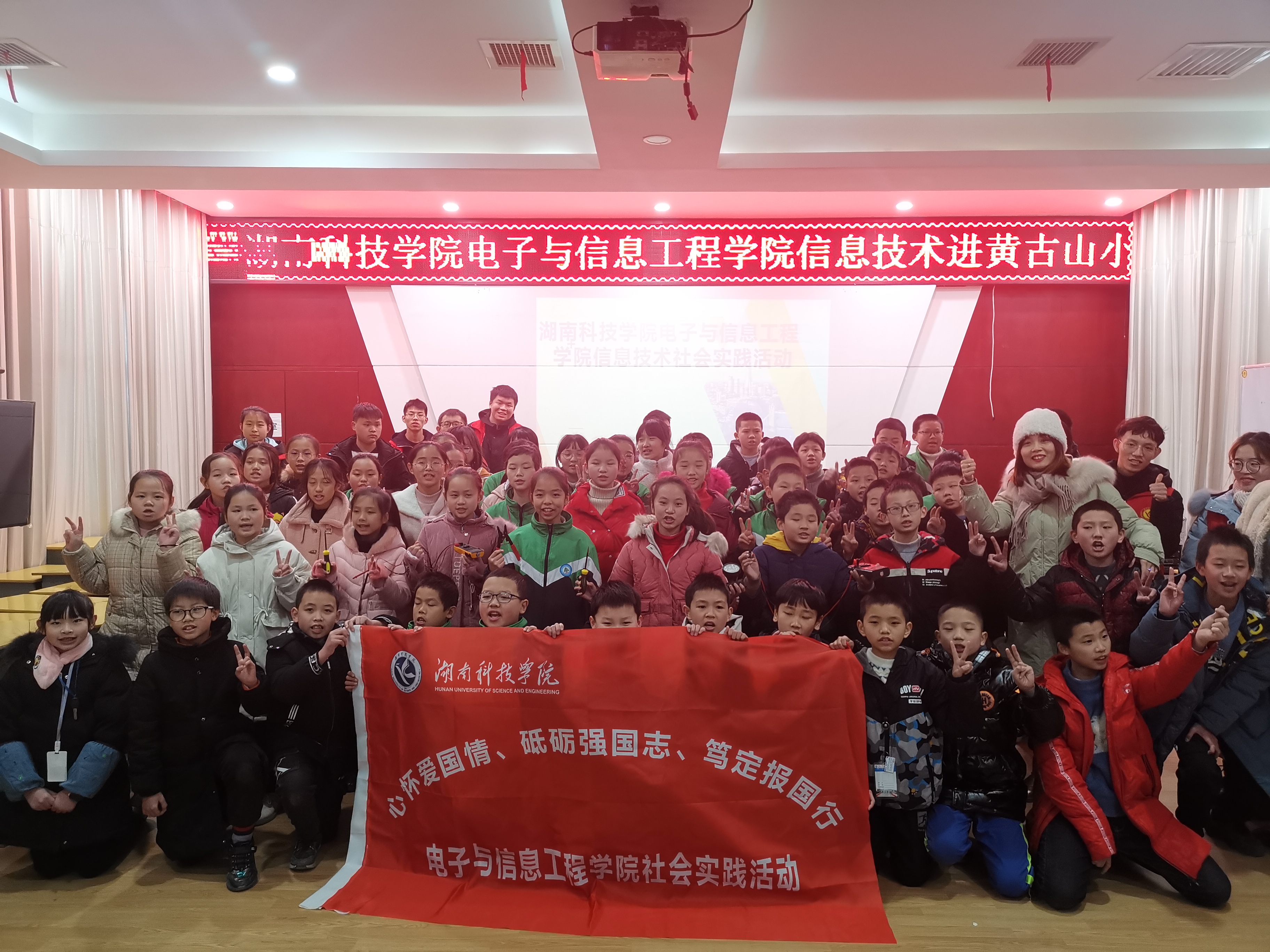 为了让小学生亲身感受信息技术带来的魅力,培养小学生了解、感知和探索信息技术的兴趣。2020年12月15日,304am永利集团官网电子与信息工程学院科普实践团队前往零陵区黄古山小学,开展以“心怀爱国情,砥砺强国志,笃定报国行”为主题的社会实践活动。