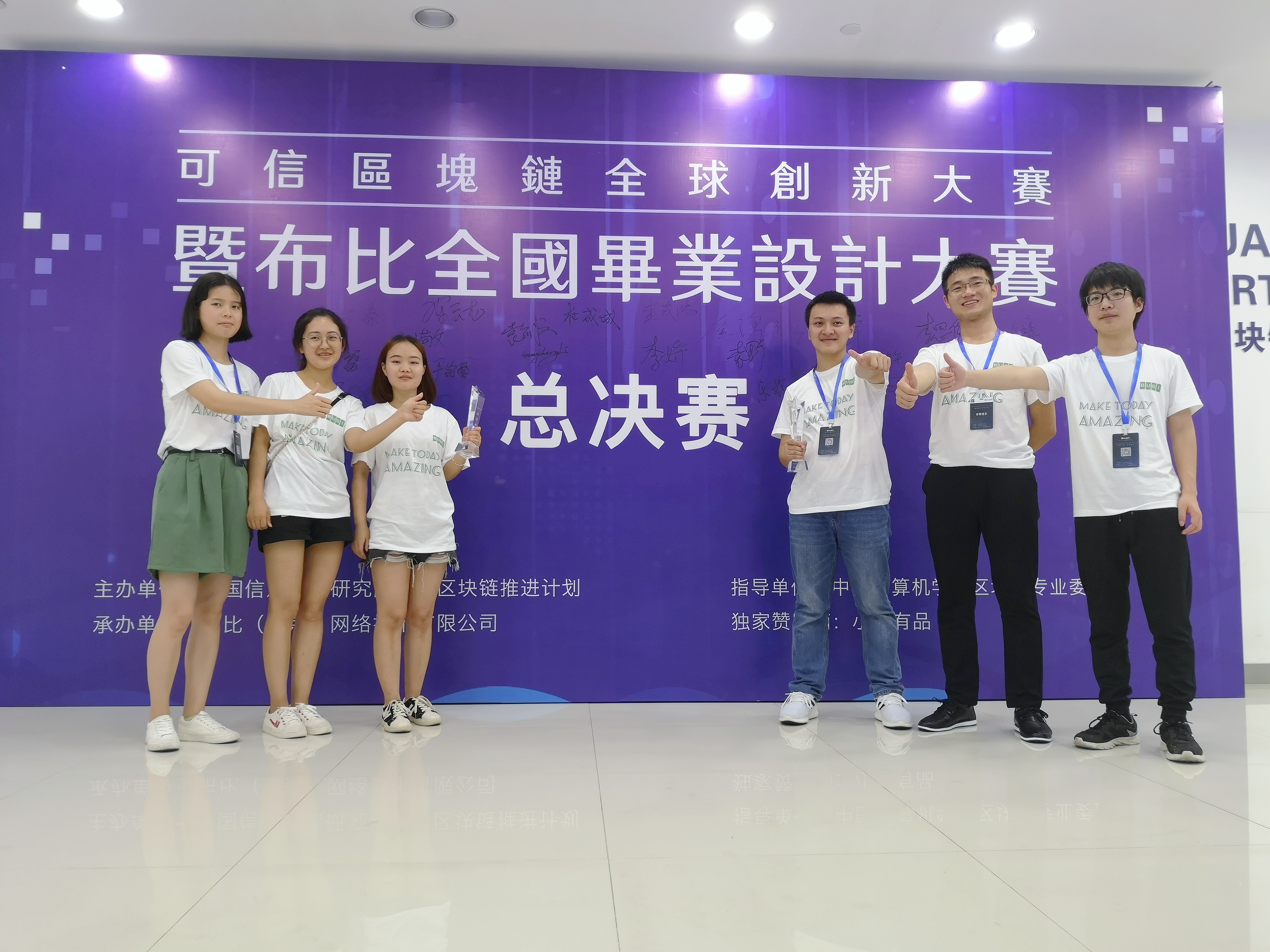 本网讯 由中国信息通信研究院主办、中国计算机学会区块链专委会协办、布比(北京)网络技术有限公司承办的可信区块链全球创新大赛日前落下帷幕,永利官网参赛的两支队伍过江队、风之彩队以第三名和第十二名的好成绩分别获得大赛的二等奖和优胜奖,其中过江队还获荣获了全场唯一的最佳人气奖,为永利官网在此类赛事的最好成绩。