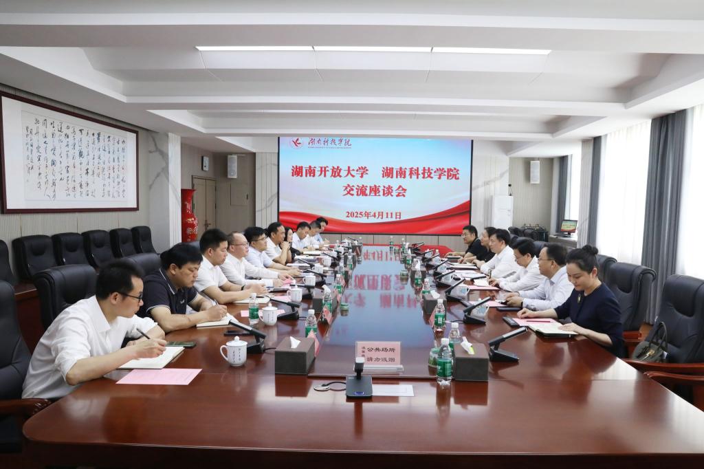 本网讯(记者谢志豪)4月11日,湖南开放大学党委书记龙献忠,副校长陈志国、梁晖来校交流,永利官网党委书记李钢、校长黄创霞、副校长何海参加座谈交流,黄创霞主持座谈会。